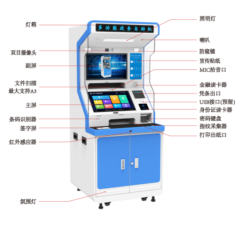 一、產品簡介自助服務終端系列產品以“7*24小時為群眾提供自助辦事服務”為核心理念,圍繞政務、警務、不動產、社保、公積金、工商等部門高頻便民服務事項的申報辦理、信息查詢及證明打印等業(yè)務,為群眾提供身份核驗(身份證識別、活體檢測、人證比對…