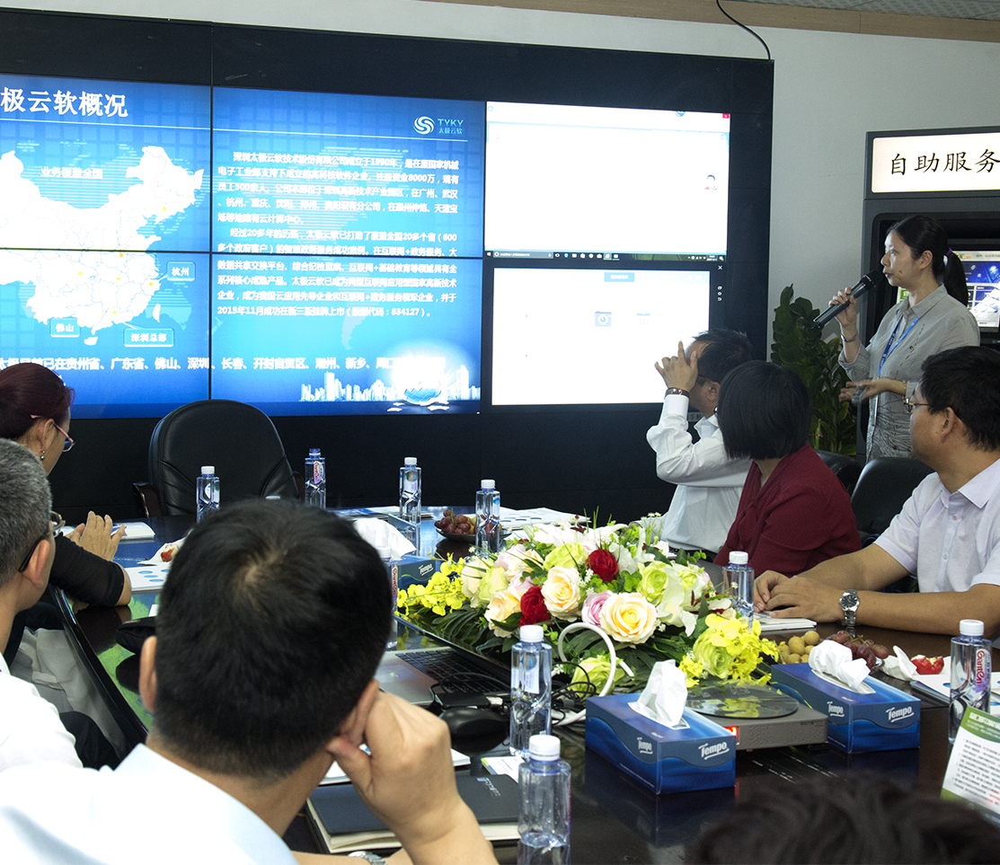 11月2日,寧夏回族自治區(qū)有關(guān)廳局及各地市政務(wù)服務(wù)中心組成66人考察團(tuán),來(lái)我司參觀考察。公司總裁鞏福熱情接待了考察團(tuán)成員,并就“互聯(lián)網(wǎng)+政務(wù)服務(wù)”平臺(tái)的功能和政務(wù)改革的推進(jìn),進(jìn)行了深入交流。公司政務(wù)云咨詢(xún)中心總監(jiān)許汨向考察團(tuán)介紹了深圳太極…