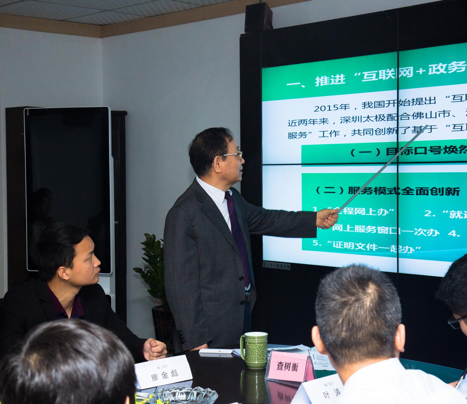 4月11日下午,貴陽(yáng)市烏當(dāng)區(qū)政務(wù)服務(wù)中心主任唐潔、辦公室主任唐繼英、業(yè)務(wù)室主任張華海一行來(lái)我司參觀考察。 查樹(shù)衡董事長(zhǎng)熱情接待了來(lái)訪(fǎng)嘉賓。查總向唐潔主任一行詳細(xì)介紹了近幾年來(lái)深圳太極在“互聯(lián)網(wǎng)+政務(wù)服務(wù)”建設(shè)方面積累的成功經(jīng)驗(yàn),并…